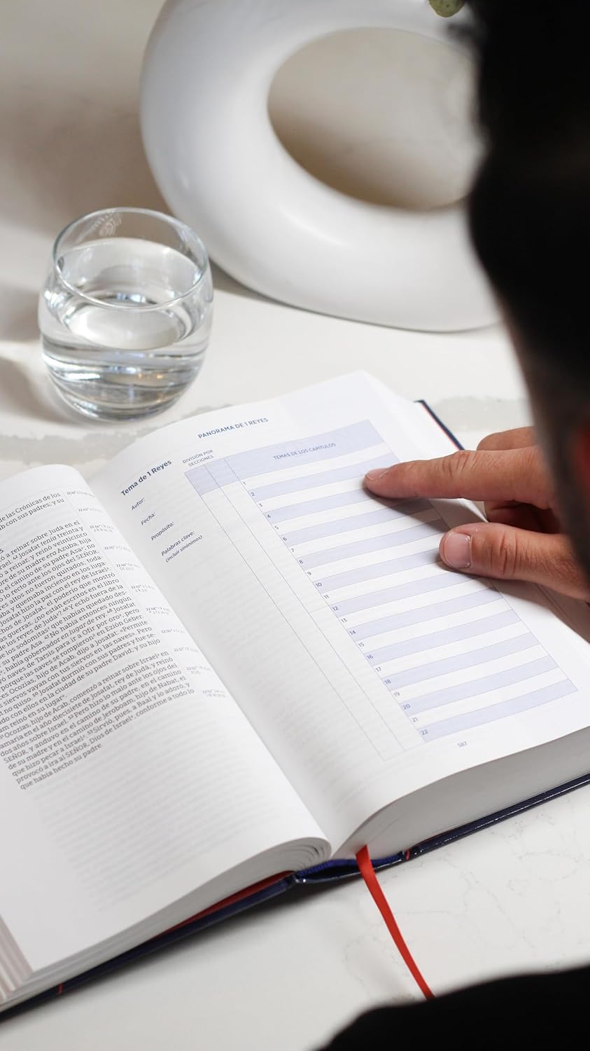 Su diseño en tapa dura azul marino y su interior a dos colores hacen que cada sesión de estudio sea visualmente atractiva y espiritualmente enriquecedora.