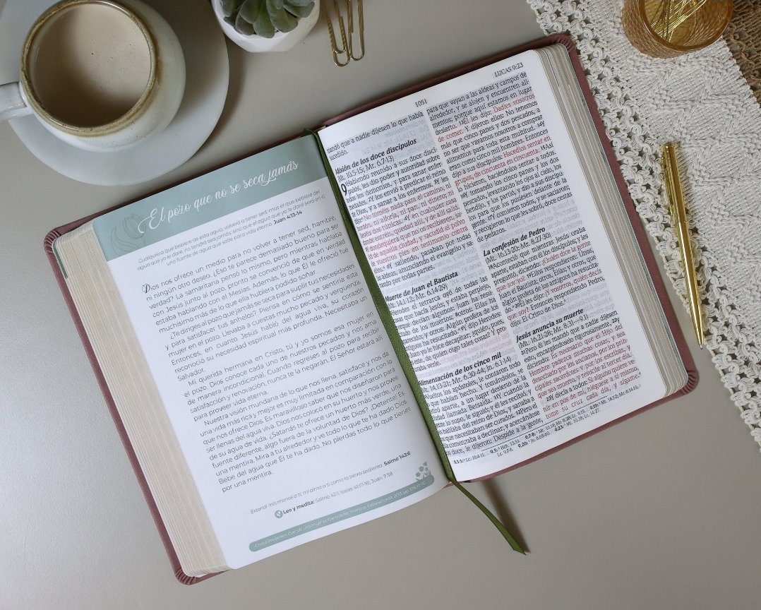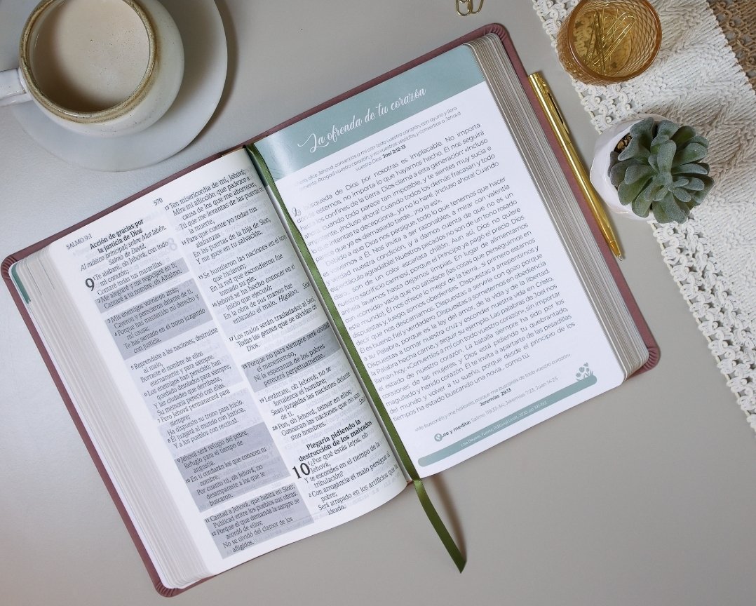Lo que realmente distingue esta Biblia son sus 92 devocionales escritos por mujeres cristianas, que ofrecen reflexiones prácticas, inspiradoras y profundamente bíblicas. Estas meditaciones están pensadas para acompañarte en cada etapa de tu vida espiritual, desde la gratitud hasta el perdón, desde la esperanza hasta la obediencia.