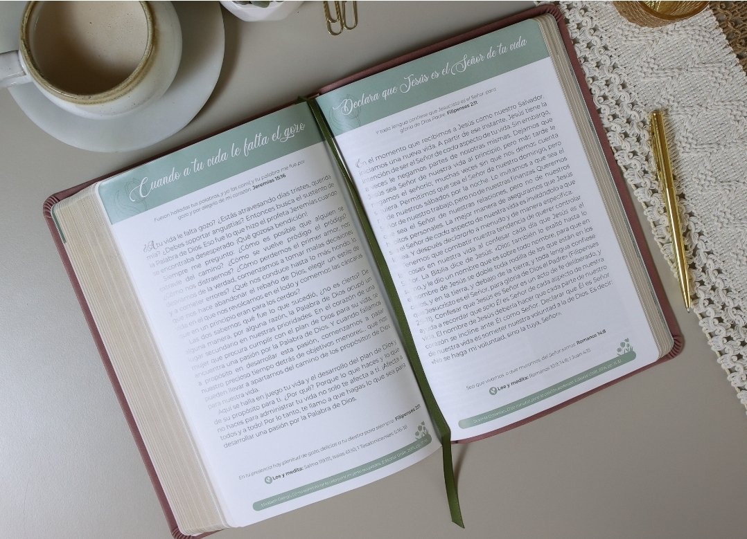 Esta Biblia no solo es un recurso espiritual, sino un compañera diaria que te recuerda quién eres: virtuosa, valiosa y amada por Dios. No dejes pasar la oportunidad de tener en tus manos un testimonio de fe tan hermoso como poderoso. Ordénala hoy mismo y déjala transformar tu intimidad con Dios.
