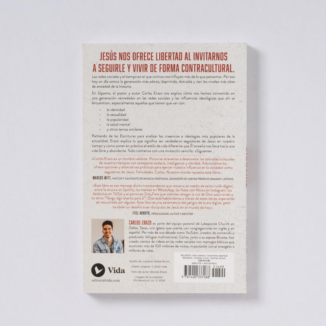 En una era marcada por el ruido digital, la confusión ideológica y la ansiedad colectiva, Sígueme: Cómo seguir a Jesús hace libre a nuestra generación se presenta como una herramienta esencial para quienes desean reconectar con la verdad. Carlos Erazo, pastor y comunicador con millones de seguidores, ofrece una visión clara, bíblica y profundamente humana sobre cómo seguir a Jesús hace libre a nuestra generación.
